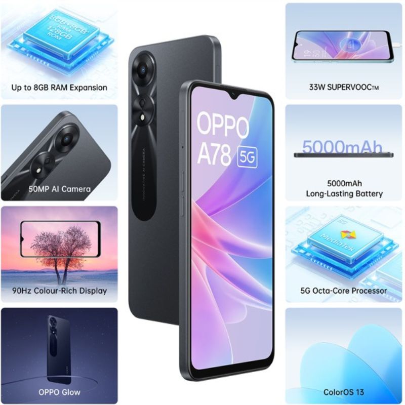 OPPO A78 5G(8GB 128GB)|2年OPPO保修|最新型号|OPPO手机|购买附赠礼品!!!